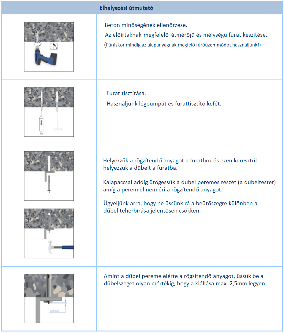 Alapanyag:  dűbeltest 4.8  / dűbelszeg 8.8